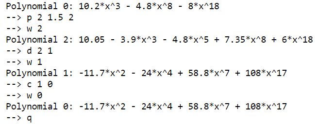 ----- The coefficients of the polynomial. 0 0 will be entered after the last term to terminate the input. -x2 - 20 x - 20 let q1 Polynomialcreate1 0 0.